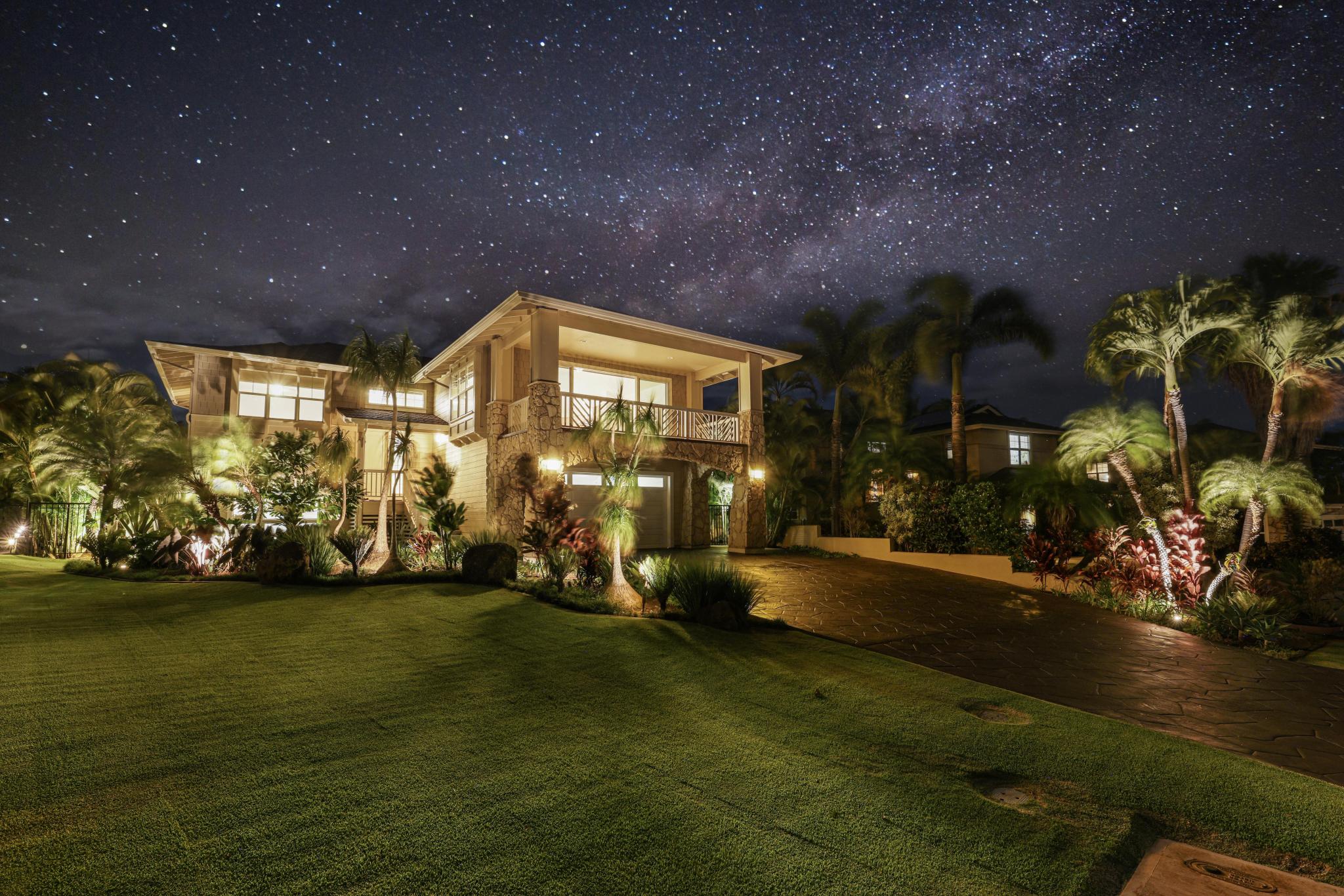 FIRST TIME EVER ON THE MARKET! Welcome to THE MOANA ESTATES GEM . . . the largest 10,382 sf homesite gated and walled offering exceptional pride of ownership. What is A Gem...by definition, it refers to something valuable or unique; The property represents the crown jewel of the neighborhood. You will discover a meticulously maintained home that has been thoughtfully upgraded inside and out, reflecting true pride of ownership. Energy efficiency meets peace of mind with a 42-panel owned net metered PV solar system paired with a 100% Cummins backup generator powerful enough to run the entire home, including 2 zone A/C with UV lighting and the additional split garage A/C. The exterior shines with the new 40-year roof, fresh paint, seamless rain gutters, black powder-coated fencing with gates and an oversized stamped and resealed driveway. Quartzite-tiled lanais and walkways, professionally designed landscape lighting, and mature tropical landscaping complete the outdoor oasis. Inside, the residence has been fully refreshed with new interior paint and carpet in 2025. The newly polished Corian countertops and custom closets by Maui Closet Systems bring modern comfort throughout. The kitchen features Bosch appliances, two refrigerators, a reverse osmosis water system with hot & cold dispenser and upgraded faucets & shower heads. Two complete laundry sets, an owned security system, surround sound wiring, and the four included wall mounted televisions enhance everyday convenience. Every detail of this home has been carefully maintained or newly improved, creating a residence that combines efficiency, beauty, and function. For those seeking a special property with enduring quality, this Moana Estates GEM is for you. Come preview a special property!