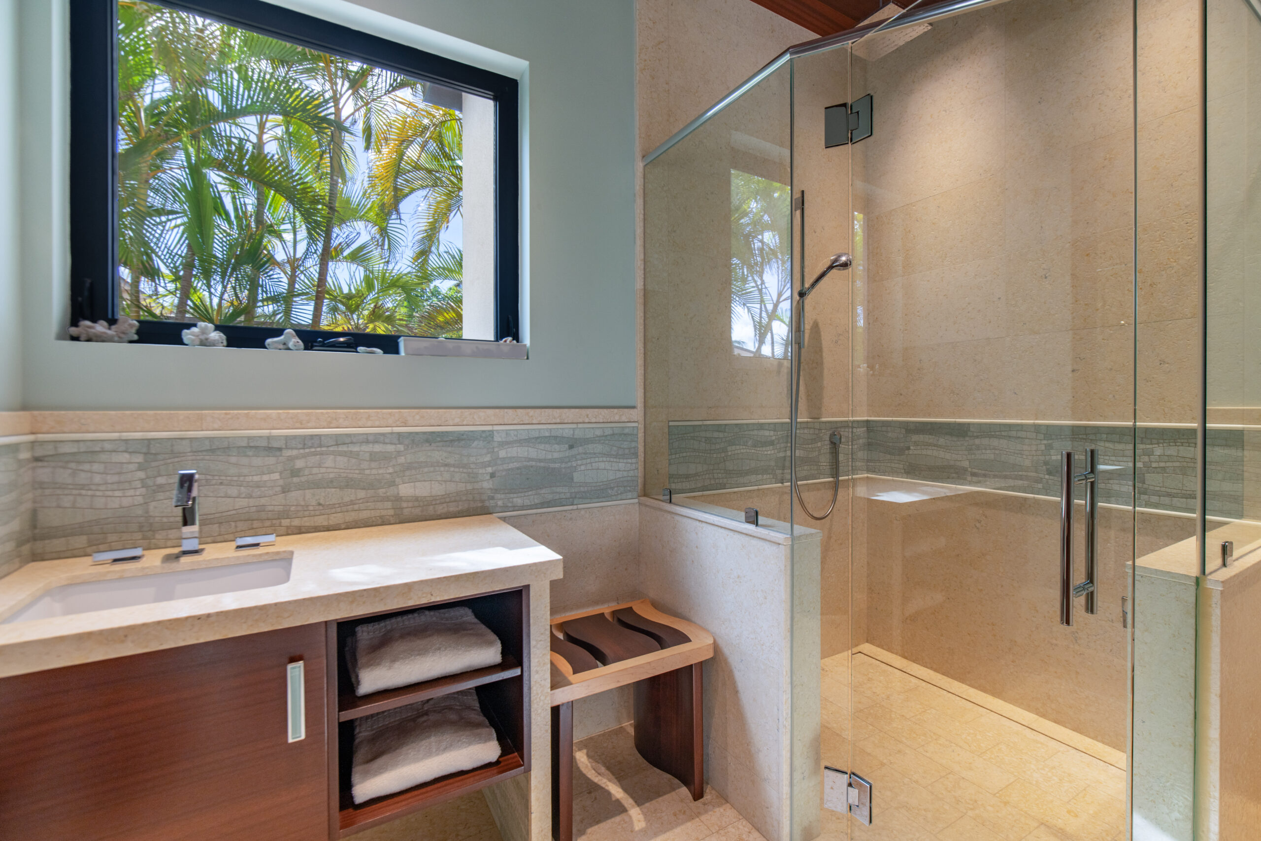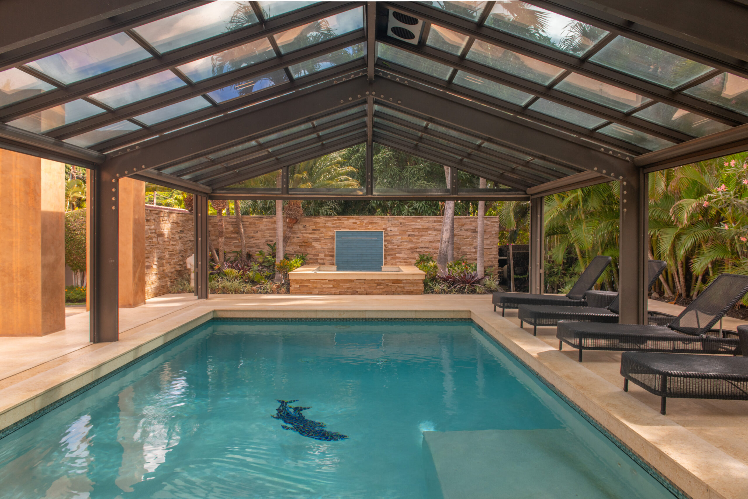 The state-of-the-art smart Lutron home controls four ocean-inspired ensuite bedrooms - five-and-a-half baths complemented by a glass-roof pool lounge with jacuzzi & waterfall - five-zoned a/c plus an air-conditioned two-car garage - 84 owned PV solar panels - a separate two-bedroom guest house for extended living - fully walled and gated - this estate provides complete privacy, security and serenity.